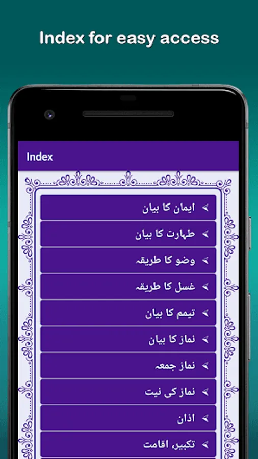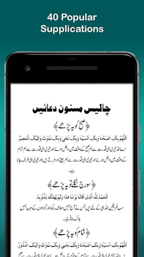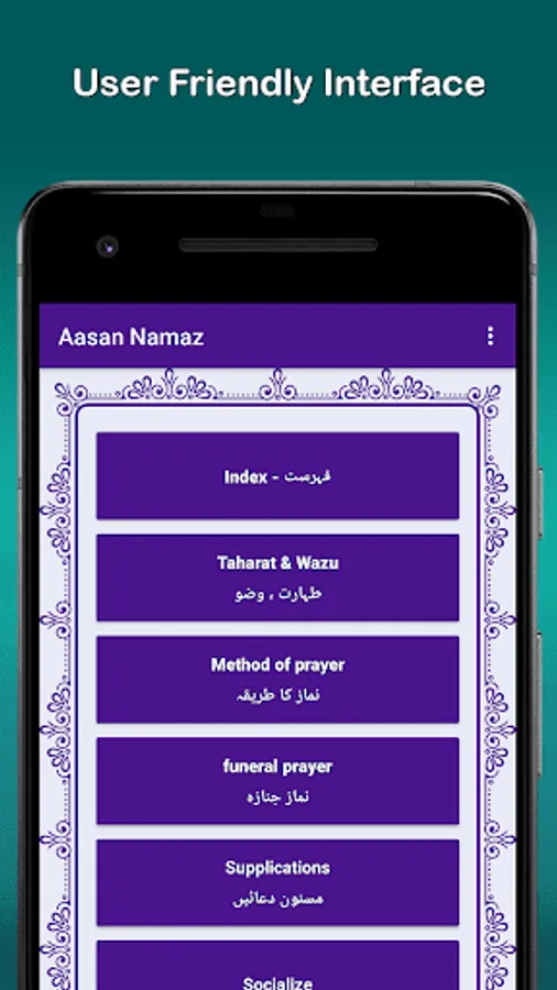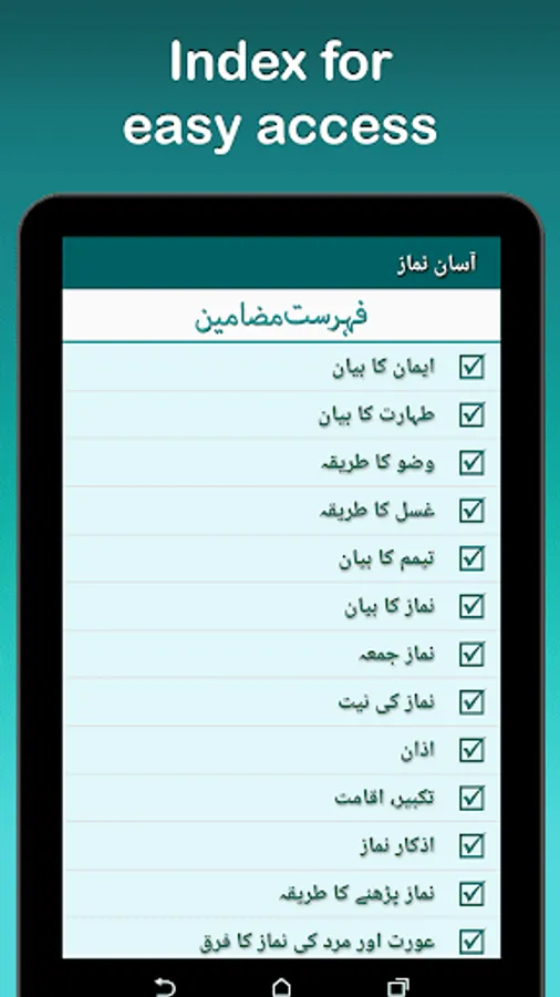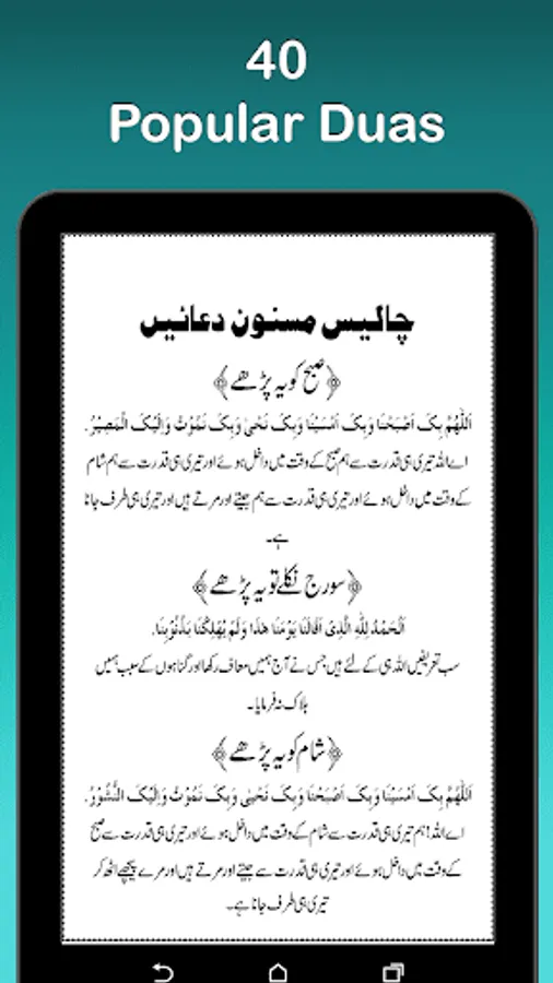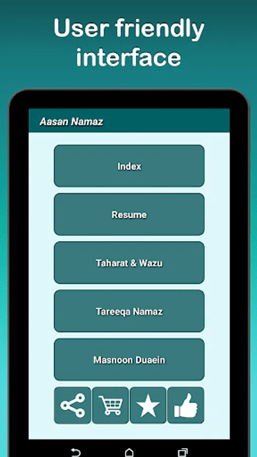 This app is a complete guide to Namaz/Salah. It states the ways to offer different Islamic prayers and their related acts like ablution (wudu), ghusal and others. It also contains a collection of Duas for different purposes.
