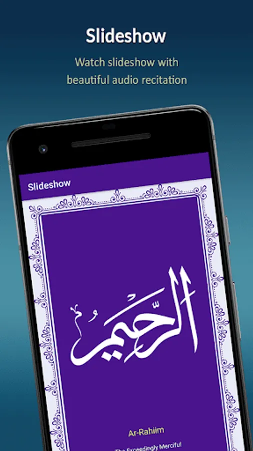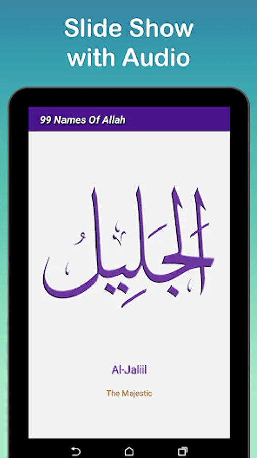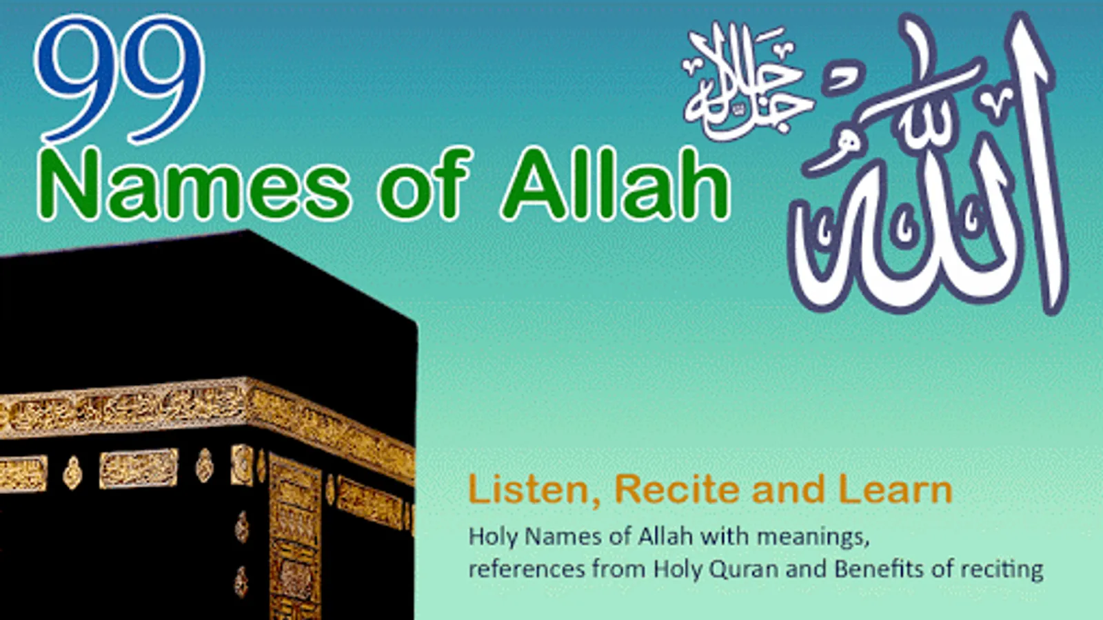 Watch slideshow of all 99 Names of Allah with beautiful audio recitation.