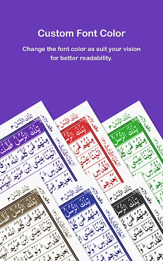 Enhance your recitation and spiritual experience with the real feel of actual printed Quran anytime anywhere. Holy Quran has a real page turning effect, elegant style, smooth Nastaliq font and different modes for better readability.