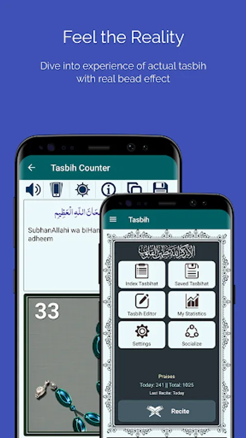 A great combination of aesthetics of actual tasbih with power of technology giving you a real experience. Zikr of Allah-Almighty anytime anywhere on your smartphone.
