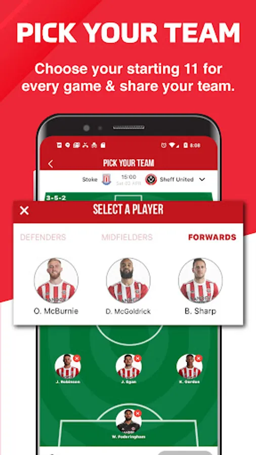 Choose your starting 11 for each Sheffield United fixture on our line-up builder and share with your friends socially.