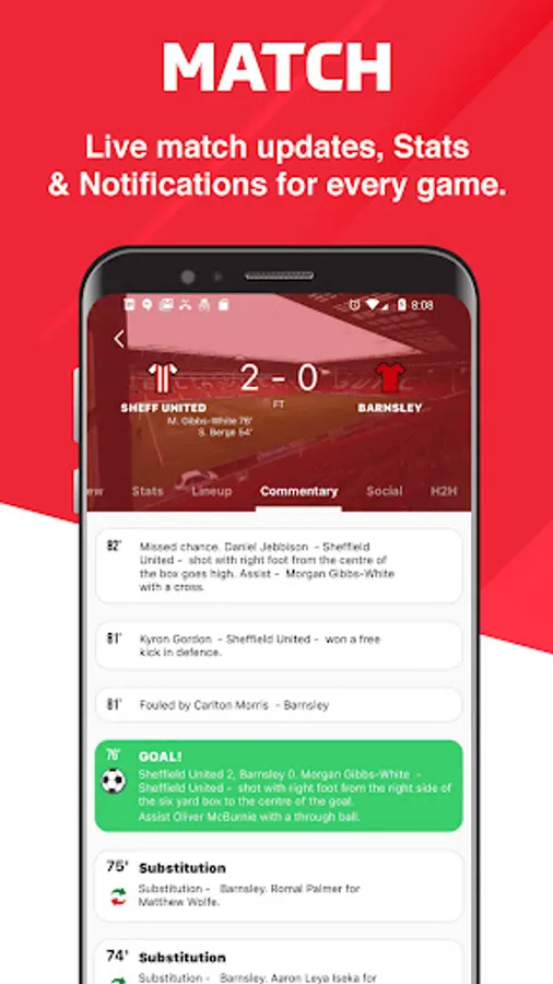 Matchday build-up, featuring head-to-head stats, match predictions and team news. Live match alerts, line-ups, commentary, in-depth stats, player ratings, top social tweets, and fan reactions.