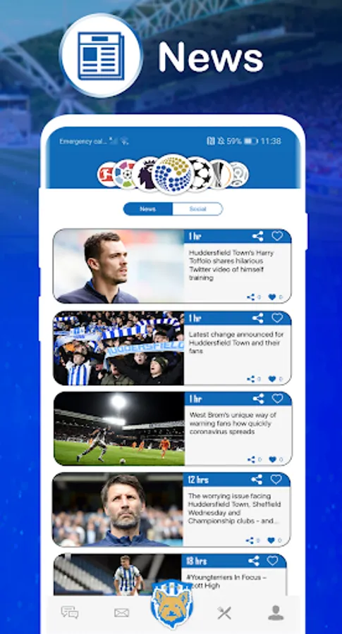The-Terriers offers complete football coverage of the Huddersfield Town First Team, Huddersfield Town Women and Huddersfield Town Youth teams, on top of 98+ football leagues across the world, including: Premier League, Champions League, Europa League, La Liga, Bundesliga, Ligue 1, Serie A, World Cup, Euros, Nations League, Championship, Scottish Premiership, Eredivisie and Primeira Liga.