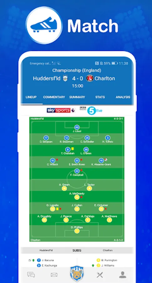The number one football app for Huddersfield Town fans! Get your Huddersfield Town live scores, instant goal alerts, breaking news, transfer updates, match stats, match highlights, fixtures, results, and Huddersfield Town fan podcasts all in one place.