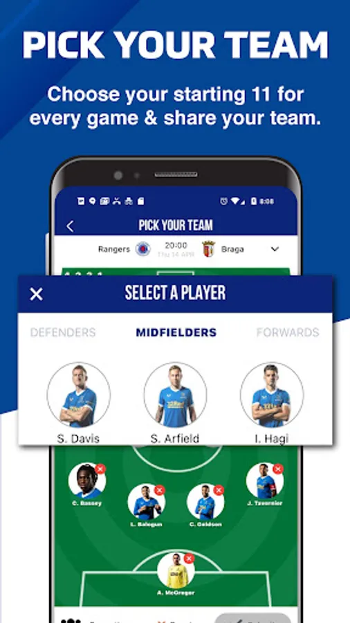 Choose your starting 11 for each Rangers fixture on our line-up builder and share with your friends socially.