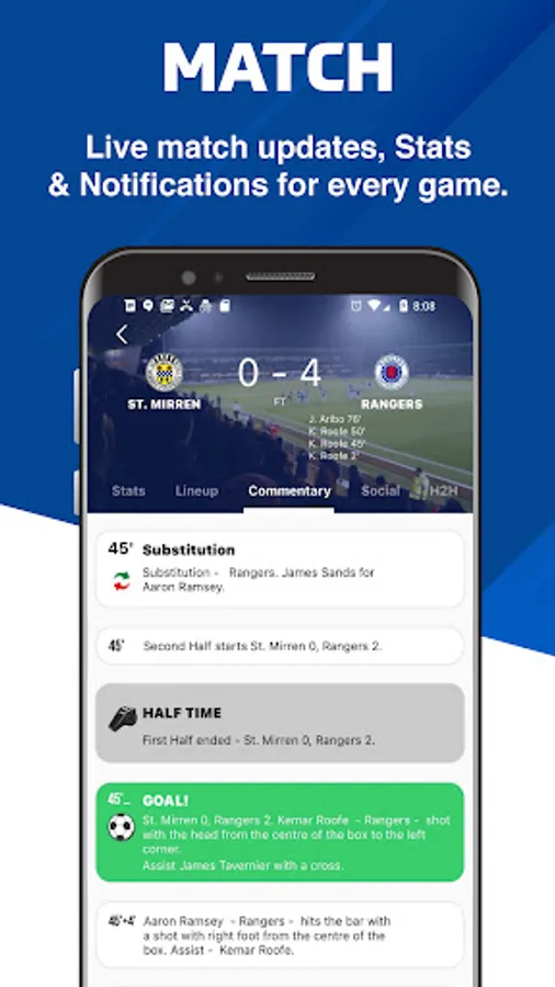 The number one football app for Rangers fans! Get your Rangers live scores, instant goal alerts, breaking news, transfer updates, match stats, match highlights, fixtures, results, and Rangers fan podcasts all in one place.