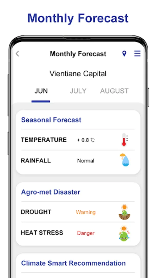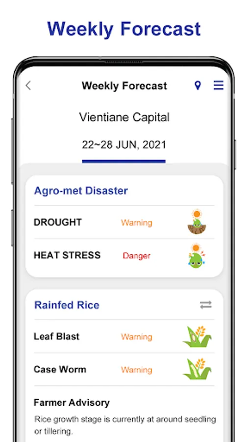 This app provides Laos weather, weekly forecast, monthly forecast, and farm report service.