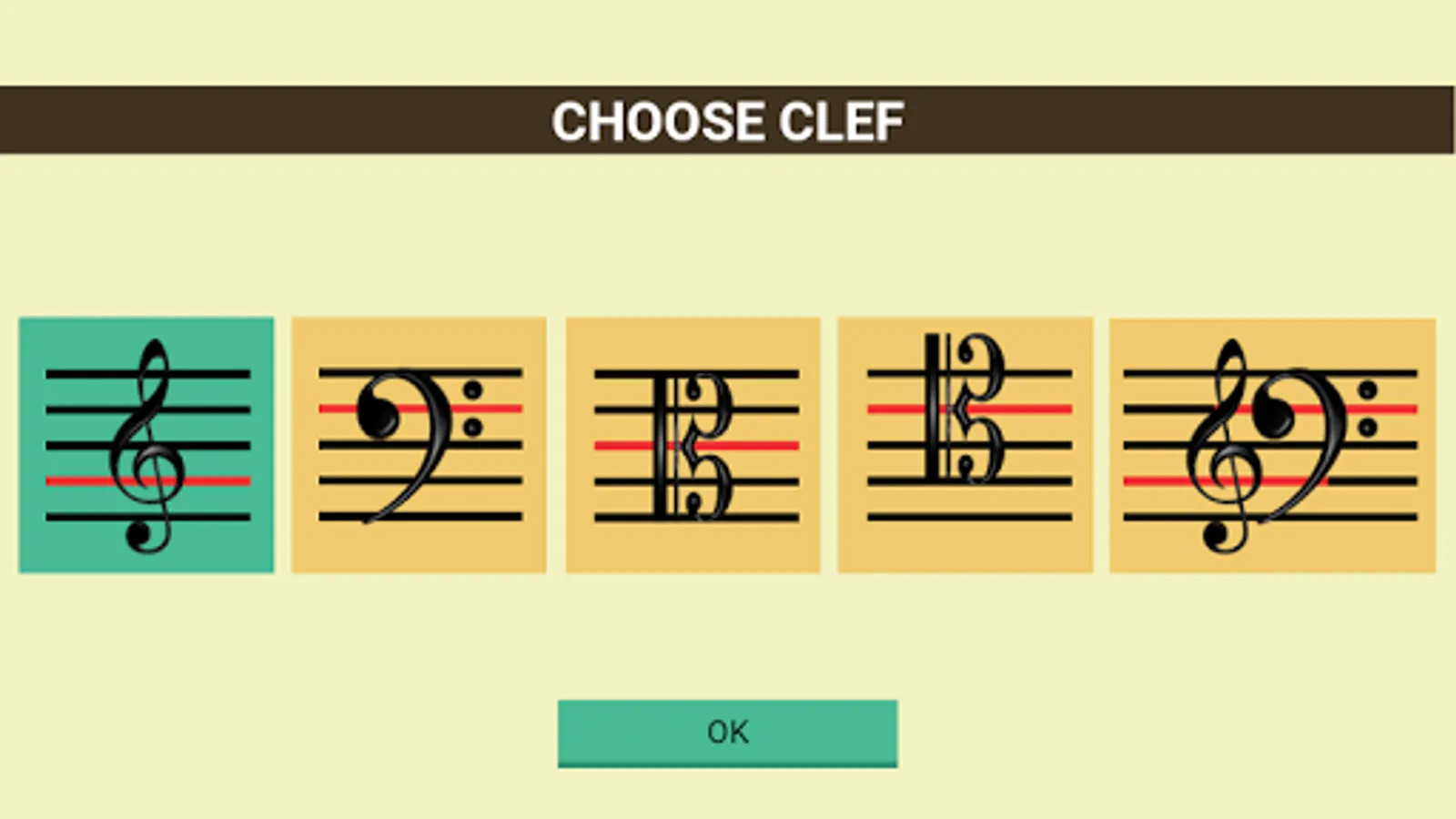 1. Choose the clef. Treble Clef, Bass Clef, Alto Clef or Tenor Clef.