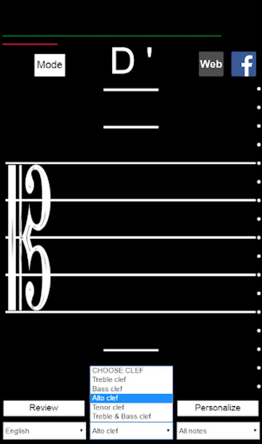 1. Choose the clef you want to learn. Treble Clef, Bass Clef, Alto Clef or Tenor Clef.