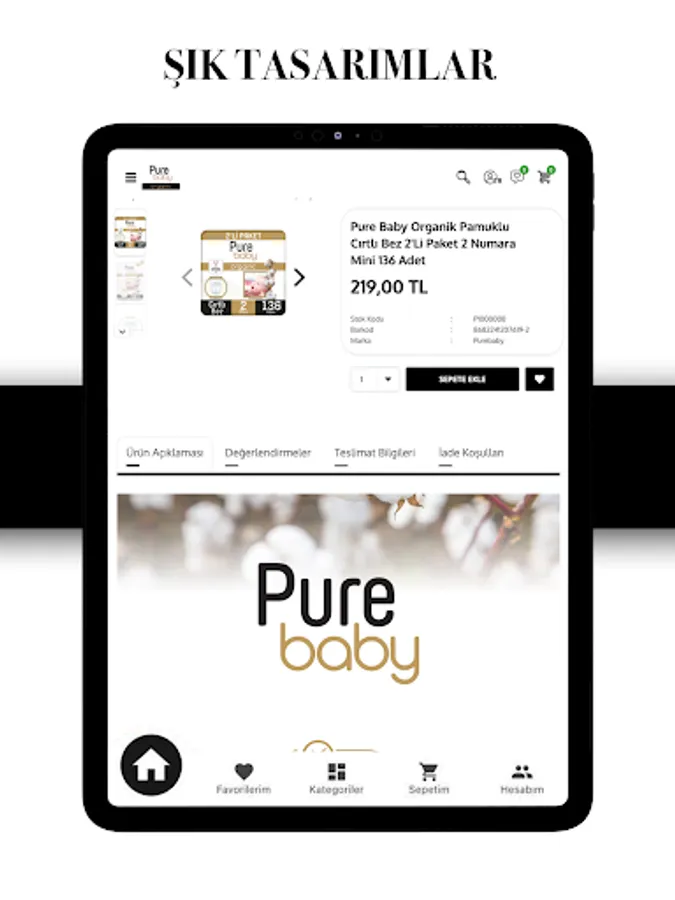 Pure Baby Organic, which provides special care for your baby's sensitive skin; It is offered with both cotton velcro cloth and bamboo panty cloth options for different preferences.
