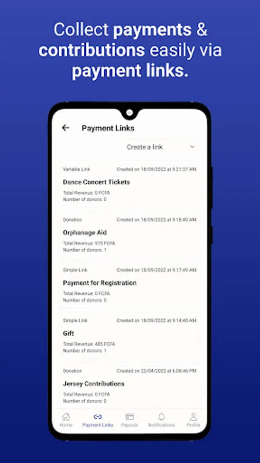 • Create payments links to collect all forms of payment (contributions, donations, tickets, subscriptions, fees, crowdfunding, etc)