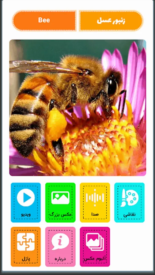 Dozens of species of different types of living things, along with sound, still image, cartoon image, three-dimensional and moving image, English and Persian pronunciation, childish Persian and English