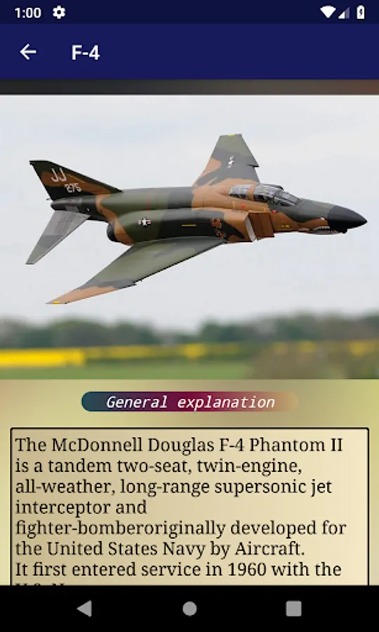 This off-line aviation cyclopedia is available at any time and would help you to recognize any aircraft's and discuss their features with your friends. An enthusiastic user has the opportunity of meeting 200 different types of aircraft's including civil aviation, fighter jets, military helicopters, and etc.