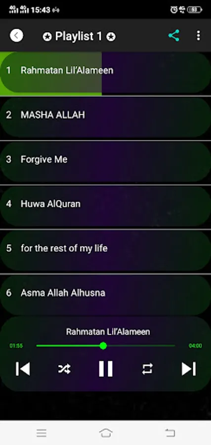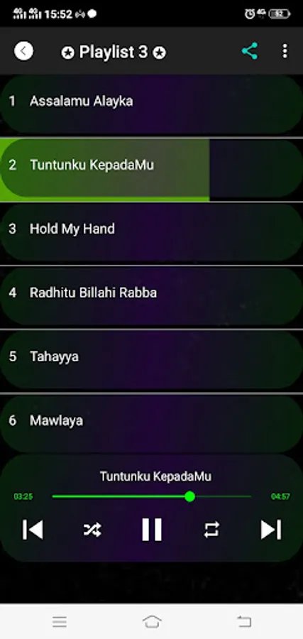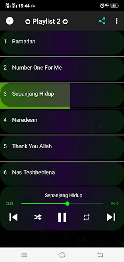 this application is very light and has no effect on your android phone, and has an elegant appearance and is easy to use, you can also hide songs without turning off the song and can open other applications, and many other interesting features
