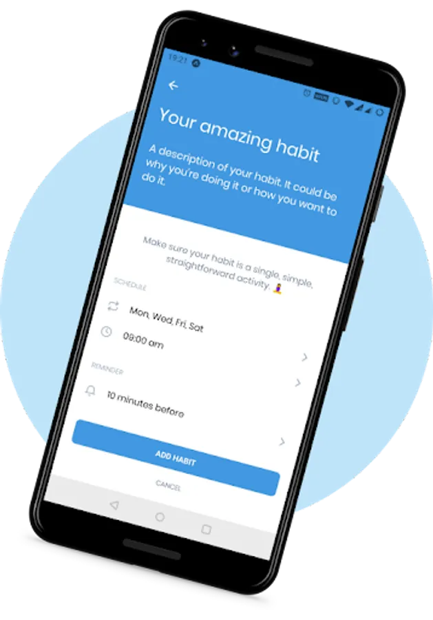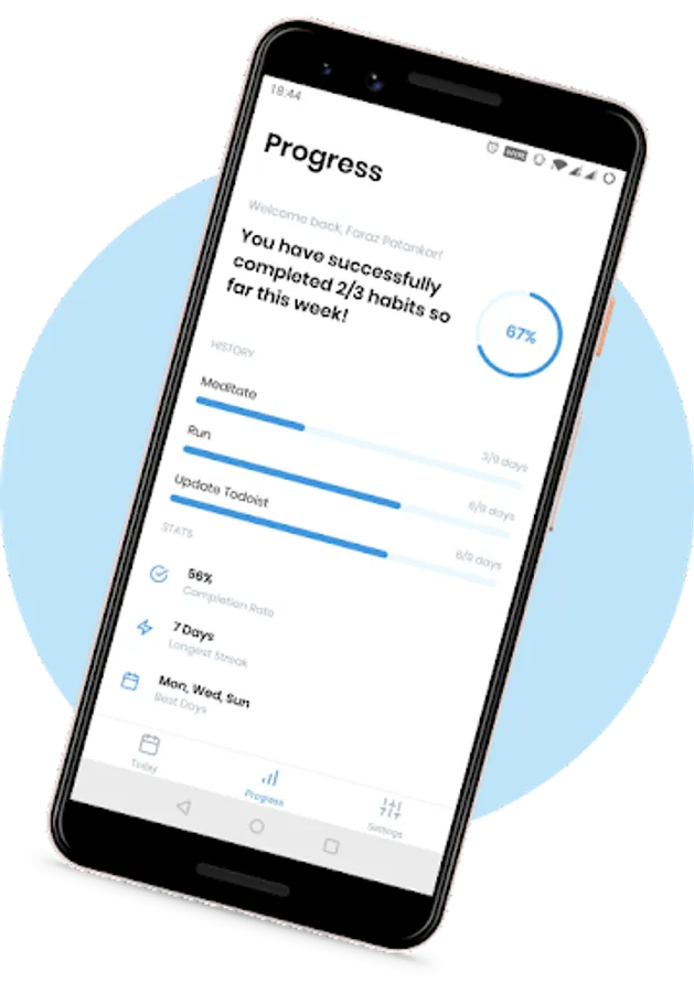 - Clean and Minimal: An interface that doesn't overwhelm. View all your habits for a day and mark them complete, all from the same place.