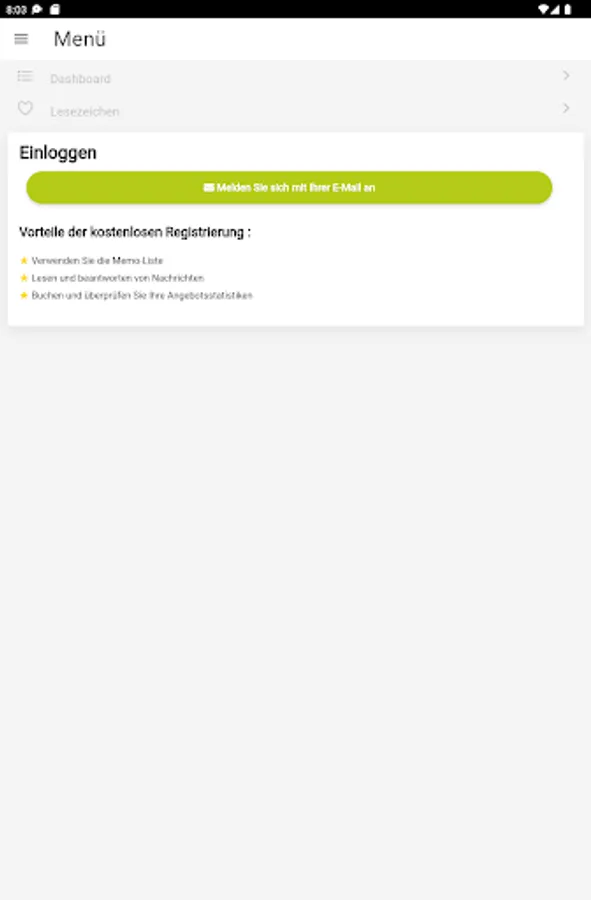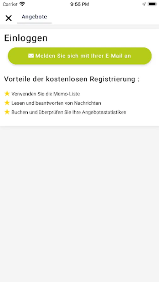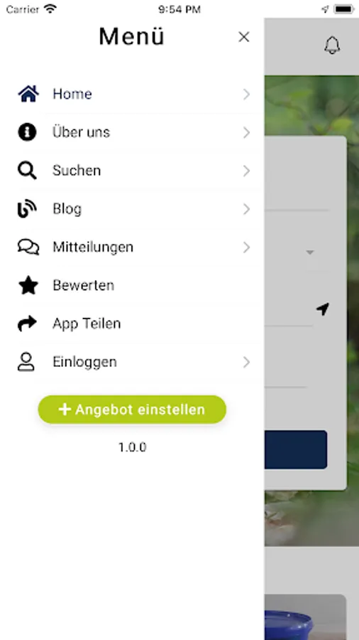 - Here you will find the most important links for navigation and the button for posting an ad (About us, Search, Blog, Notifications, Rate, Share the app, Post profile and offer).
