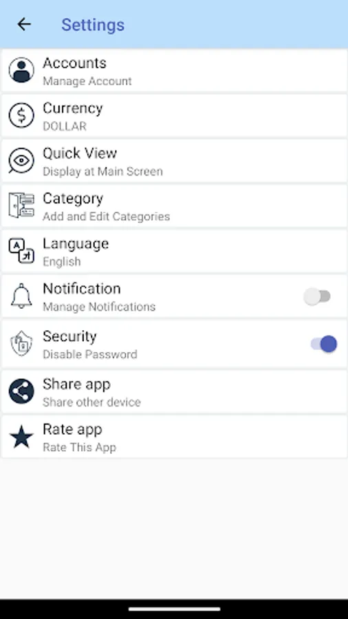 ★ Alarm Notifications. The app can configured to remind you to add your expense or income.