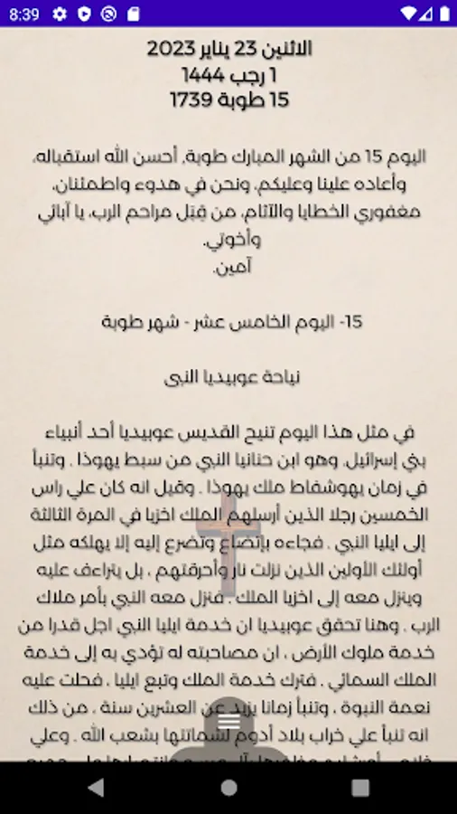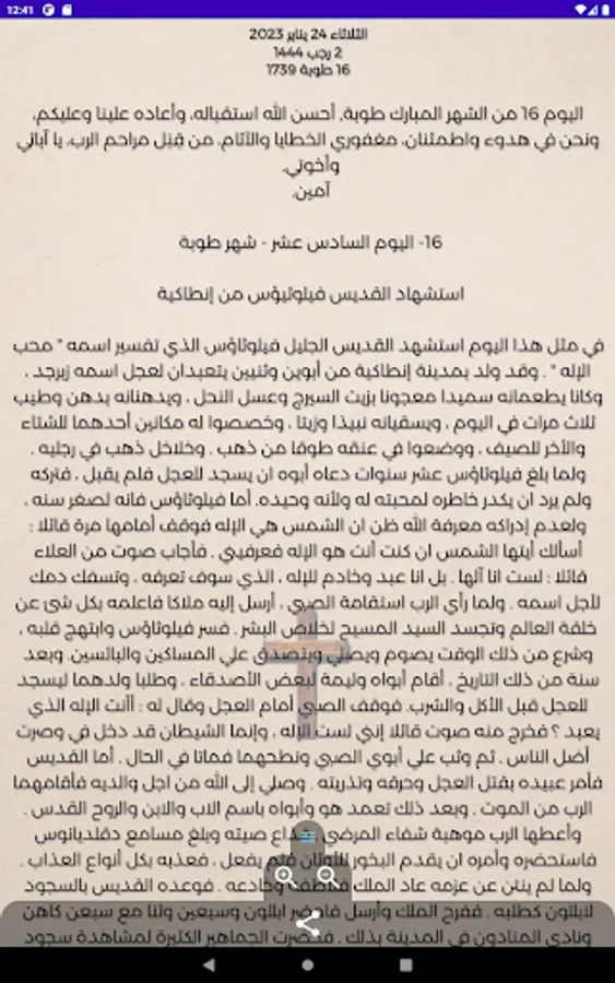 The application of the complete Bible library, the Old Testament, the New Testament, the Agbia, the Synaxarium, and the verse of the day. The application contains reading capabilities: