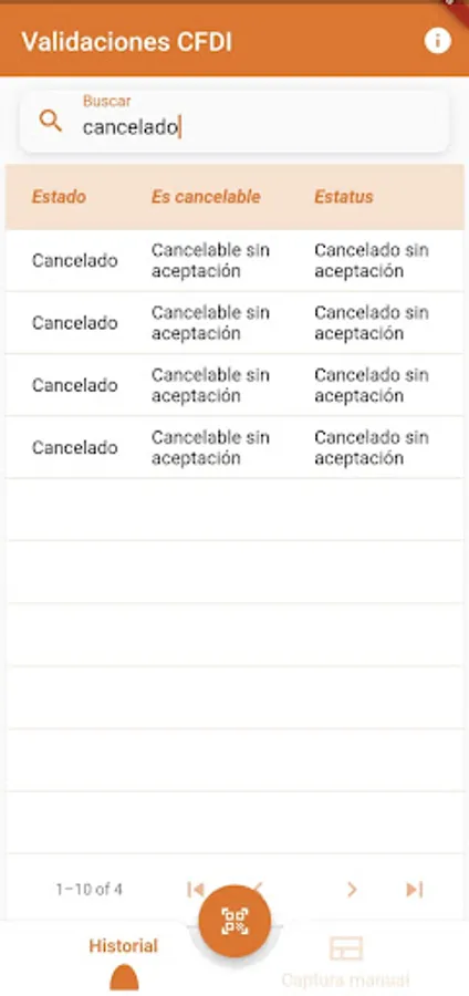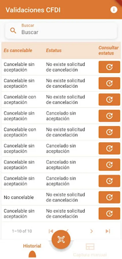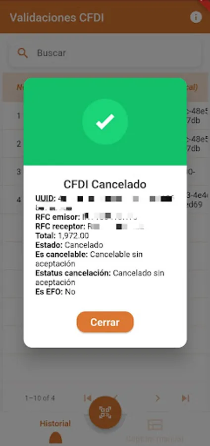 Check the current status of any CFDI by scanning the QR or capturing the receipt information (issuing RFC, receiving RFC, UUID and total).
