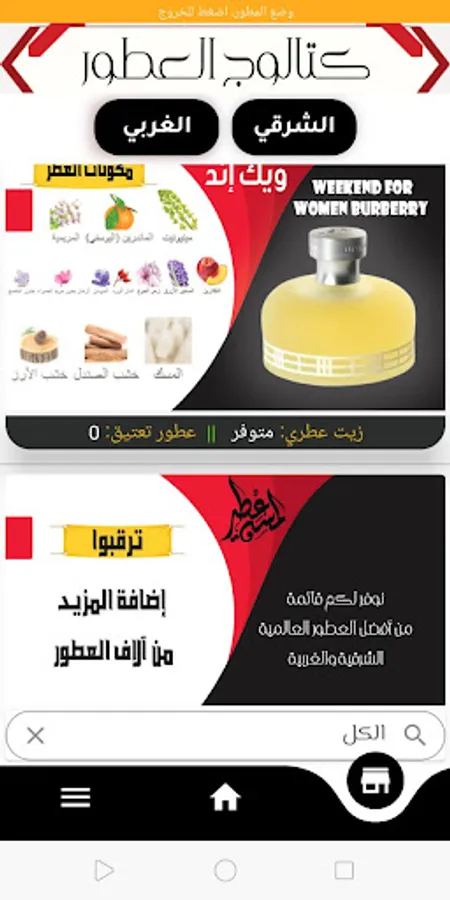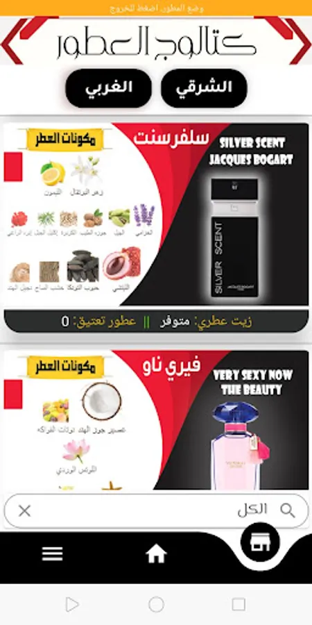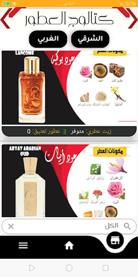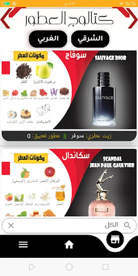 In addition, there is a list of the types of international perfumes (oriental and western) accompanied by a picture of the original bottle for each perfume, with an indication of the components of each perfume with colored illustrations. Which is like a (catalog) for perfumes.