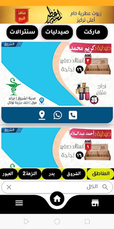 Lamset Attar application displays outlets for selling essential oils of (Attar Lamset), which is characterized by the selection of high-quality international essential oils, and presents them in the form of crude oils without any additives inside luxurious colored glass containers (a quarter of a tola | 3 ml that works with a feather and ball) in many shops Pharmacies, exchanges, etc.