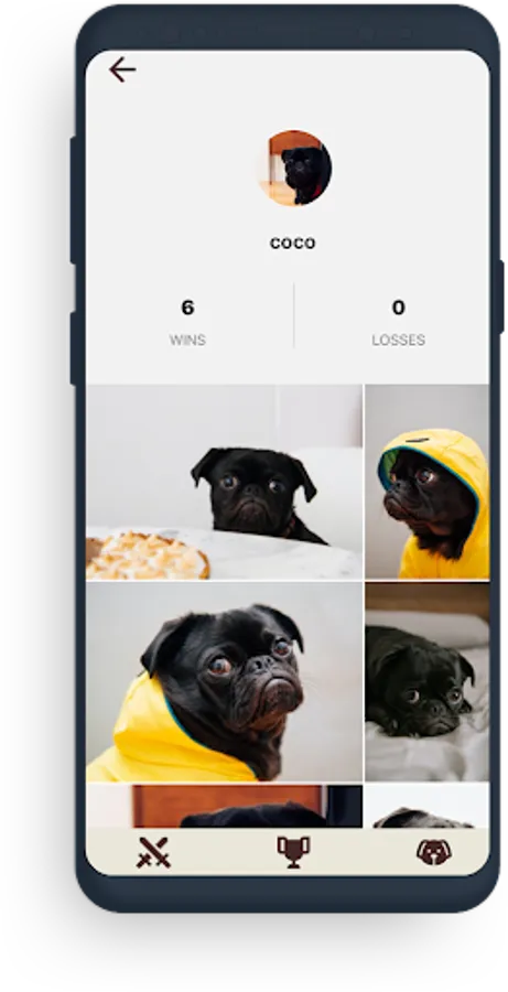 Create a home for your puppy, upload photos and track his progress in battles. Want to showoff? Easily share his profile with your friends.