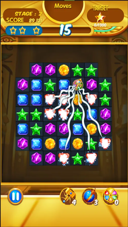2. As much as possible to get lightning jewels, bomb jewels, Pharaoh jewels ;
