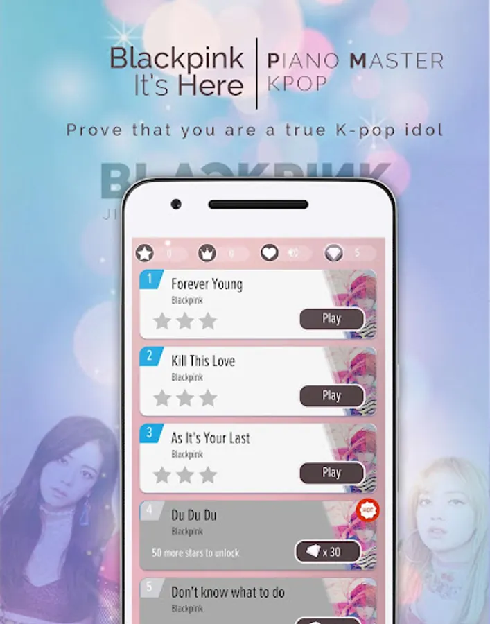 Piano Master K-Pop is a piano game that contains a variety of the most popular K-Pop songs of all time.