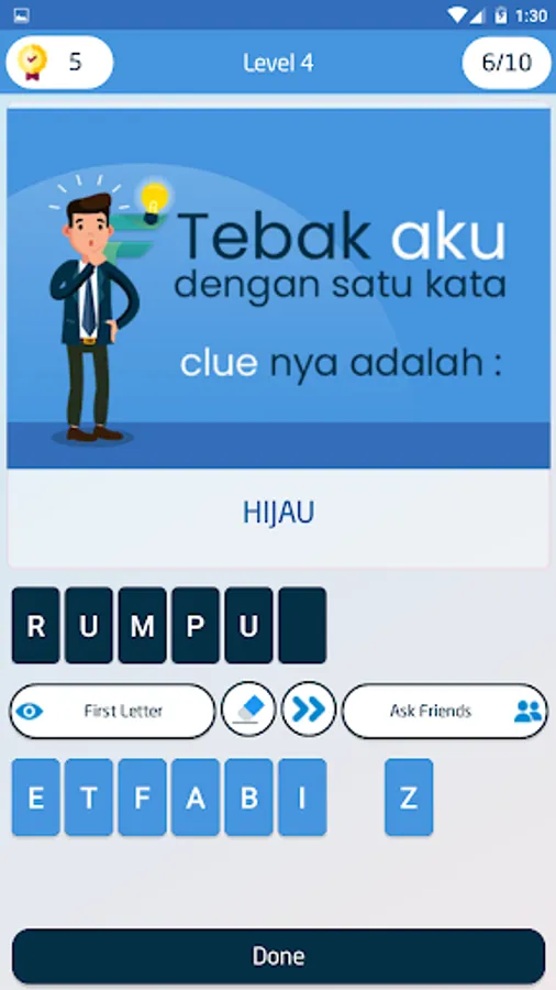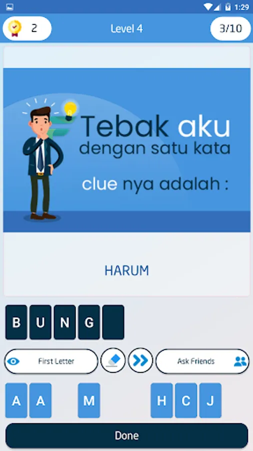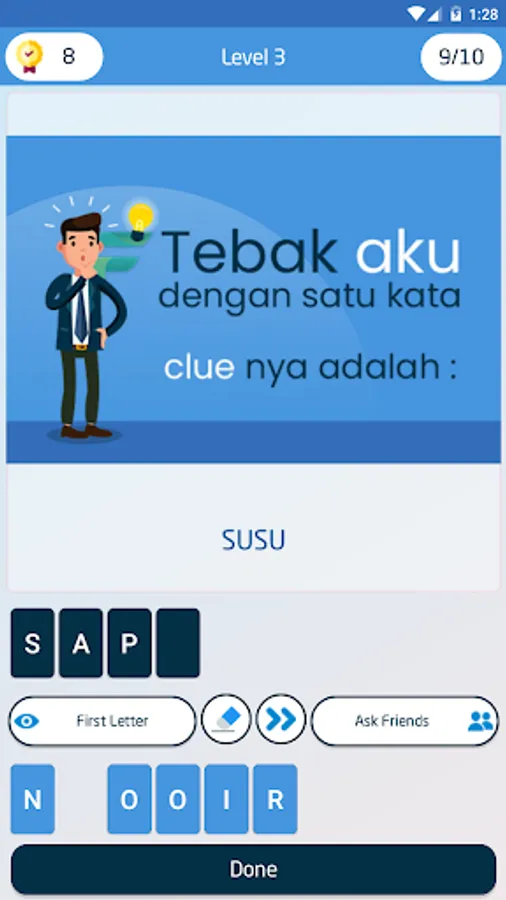 Not only that, this game also has a feature * ask friend * which is useful to help you finish this game by asking your friends through social media.