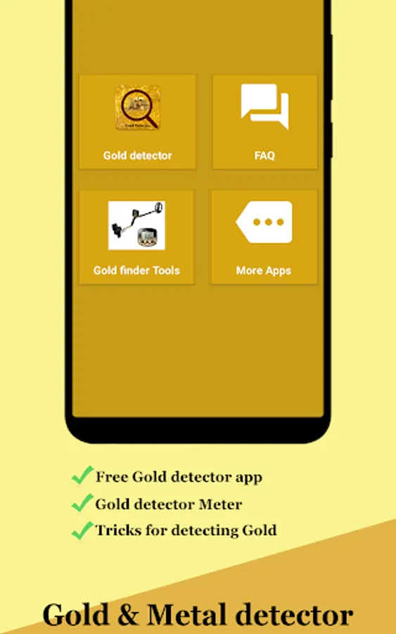 Gold detector app is an android app which is used to detect gold metal emf and other hidden devices like camera etc. so install this free app to and find different things using smartphone. now you can find easily any type of metals gold and rings easily. so take a first step and download our latest detector tool like gold detector and metal detector simulator.