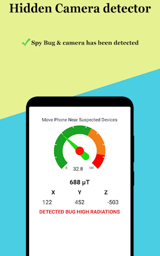 Hidden camera founder camera scanner If the beep sound is start, Stop moving your hidden camera finder app or phone here you will find spy secret hidden camera and spy secret camera. when there is a spy device or secret camera in the area, hidden camera finder app magnetic field increases with alarm and beep.