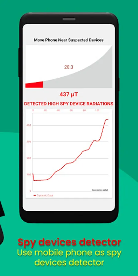 Hidden devices detector free app for android will detect spy devices like hidden spy camera hidden spy microphone bugs infrared camera, so do not wait download this hidden spy devices detector app for android now. If your phone doesn't have magnetic sensor, then radiation detector will not work on your phone, so be patient and try to use our app next feature infrared detector.