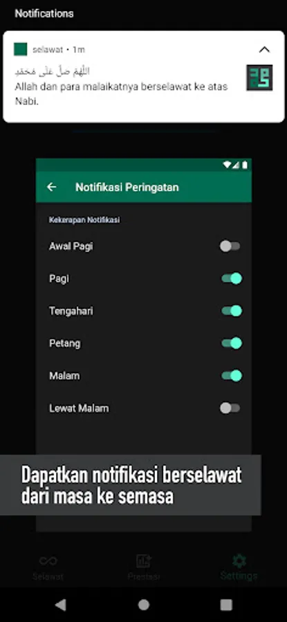 - Vibration mode for each salawat count (Users need to activate Haptic Feedback features in Android Settings)