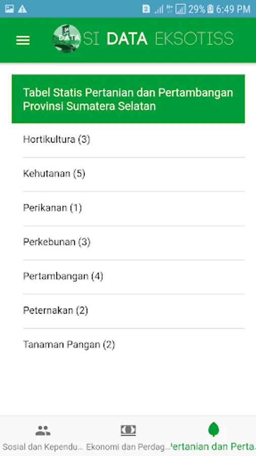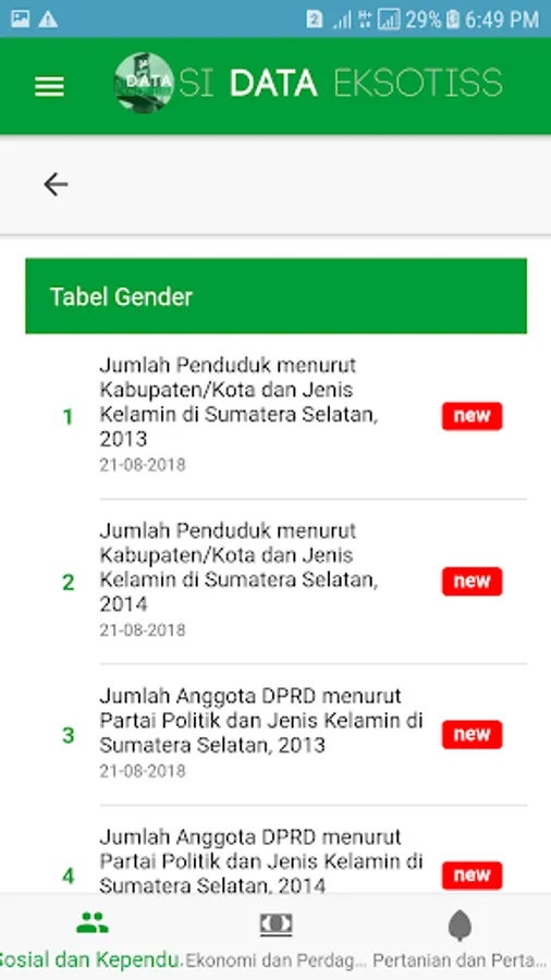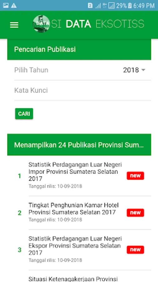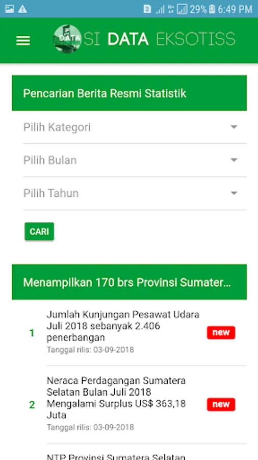 Si Data Eksotiss presents a variety of data published by BPS in the Province of South Sumatra such as publications, statistical tables and the latest statistical information from the Official Gazette of Statistics (BRS) which are released at the beginning of the month.