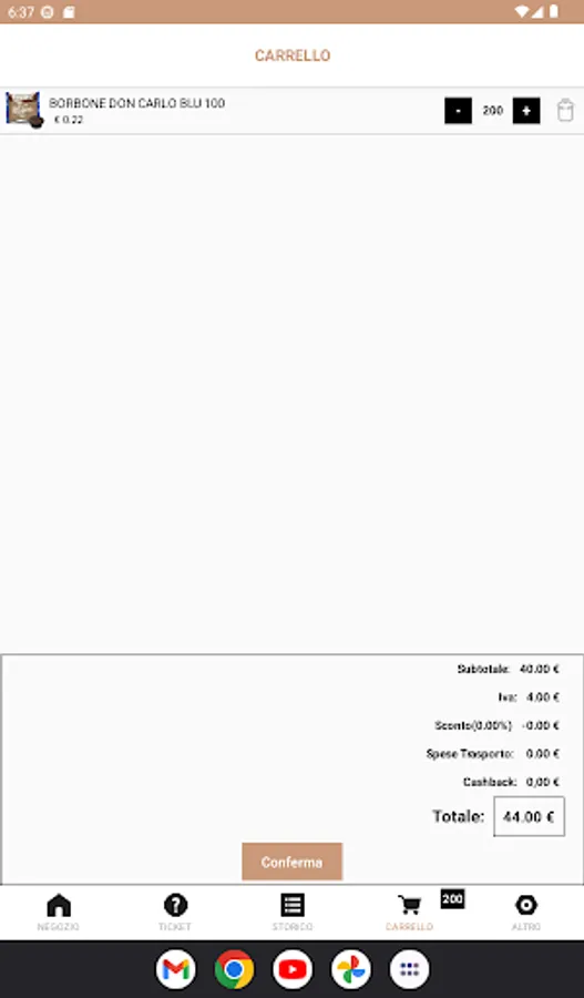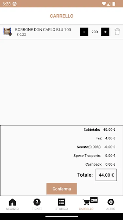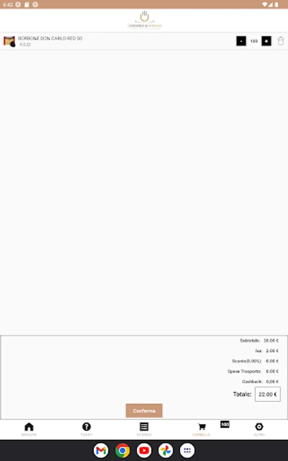 The APP allows you to adjust the parameters of the beverage dispensing machine, view the products managed by the seller and manage requests for assistance.