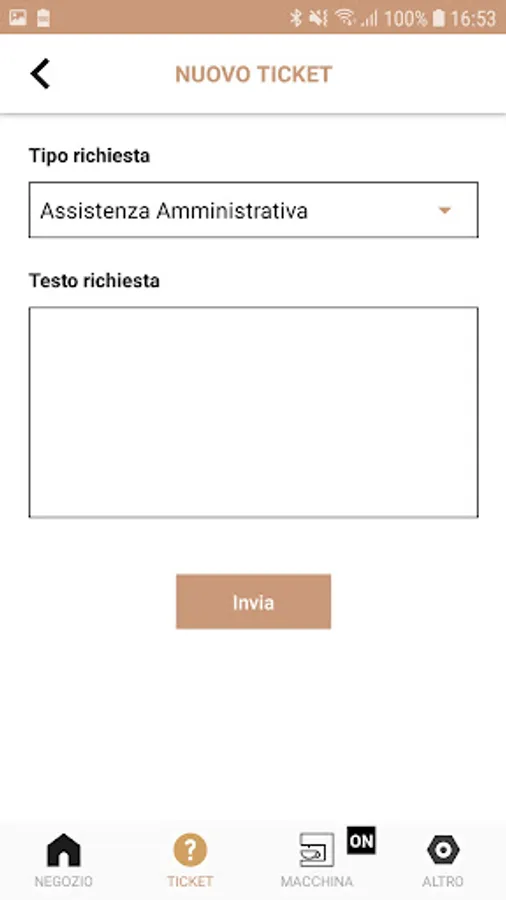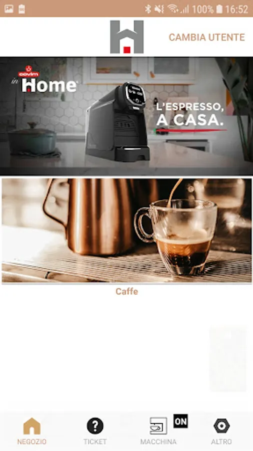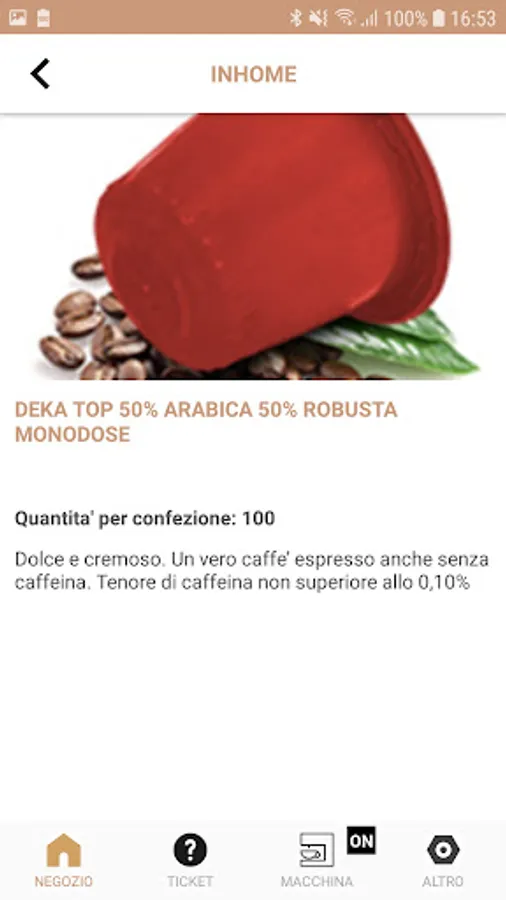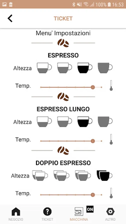 The APP allows you to read the parameters of the beverage dispensing machine, view the products managed by the seller and manage requests for assistance.