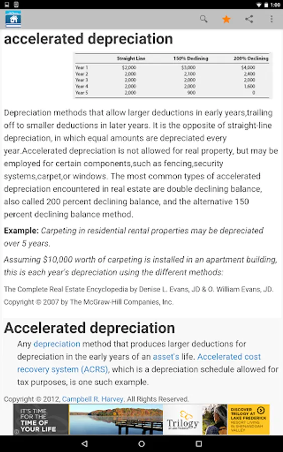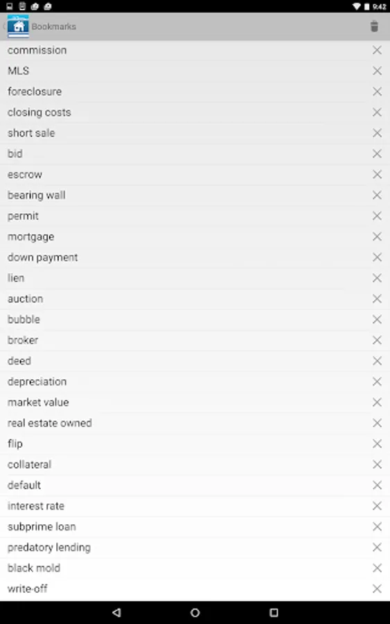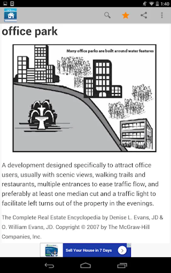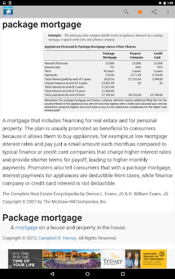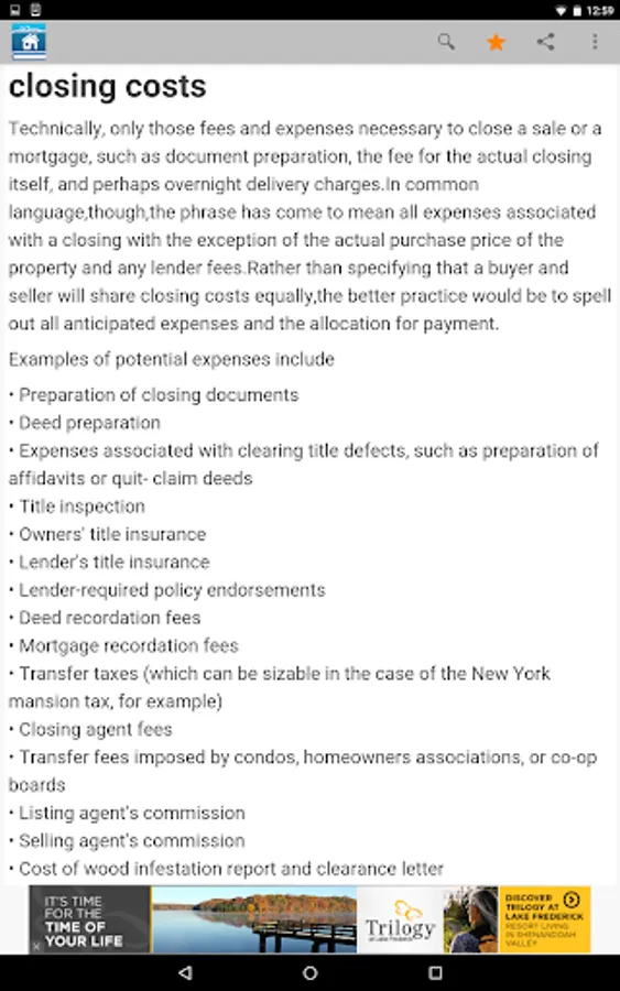 * Clear, in-depth definitions of real estate terms, including information on mortgages, property law, closing costs, down payments, commissions, real estate organizations, property types, and much more.