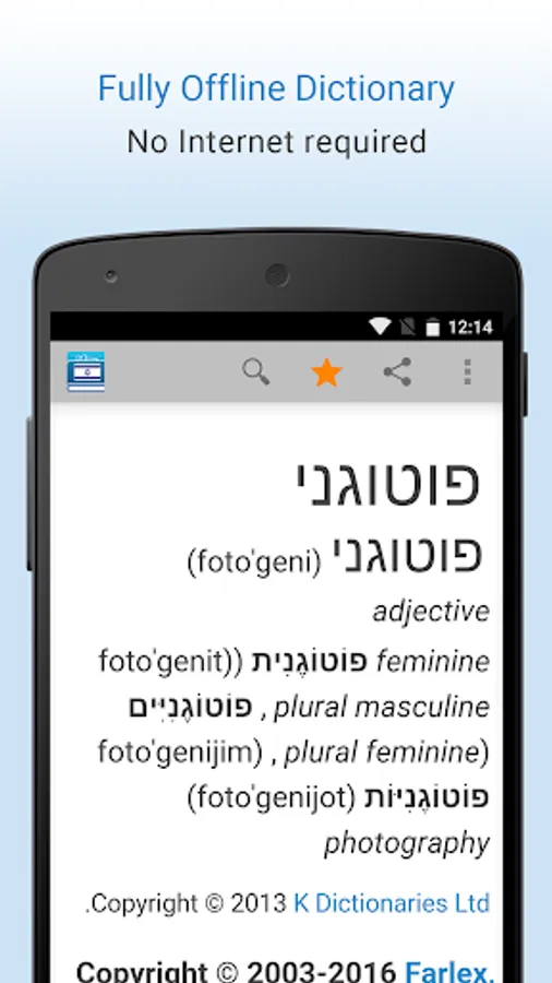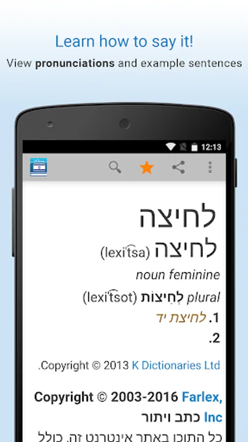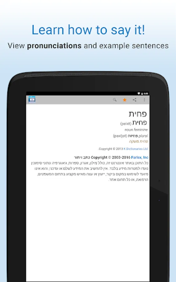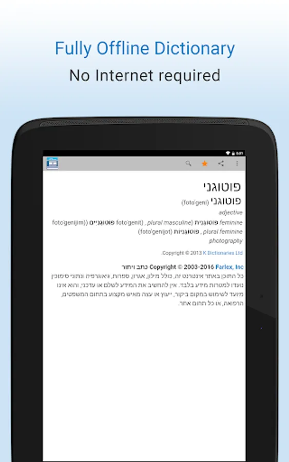 Free offline Hebrew dictionary with pronunciations, example sentences, and more. Build your vocabulary and save unlimited bookmarks.
