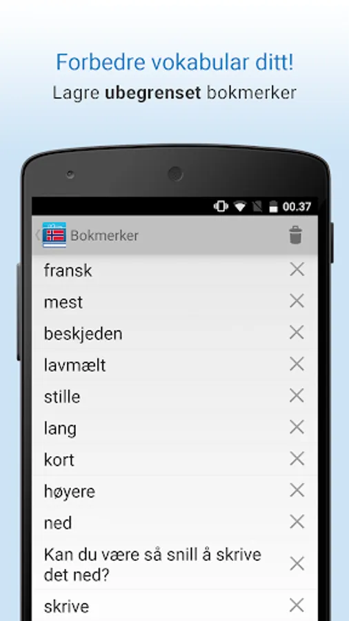 * 17,000+ word available in the free offline Norwegian dictionary. No additional downloads required!