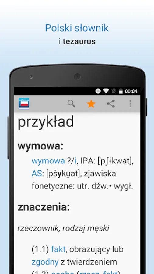 Free Polish dictionary and thesaurus plus logged Polish dictionary. Play audio pronunciation of words, save an unlimited number of bookmarks and use the advanced search.