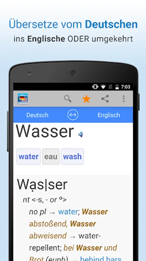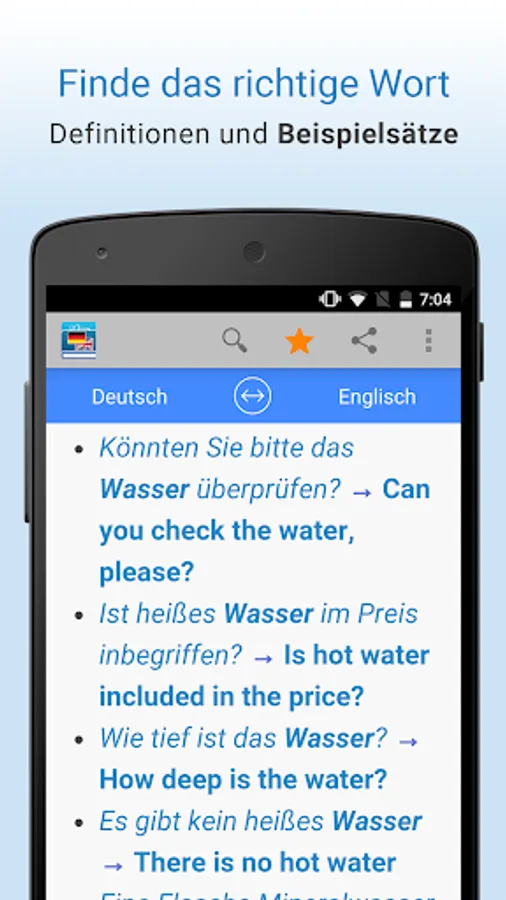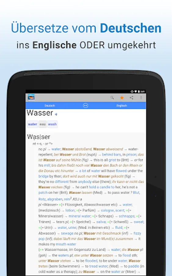 * Wechsele mit nur einem Tap vom Deutsch-Englisch zum Englisch-Deutsch Modus.