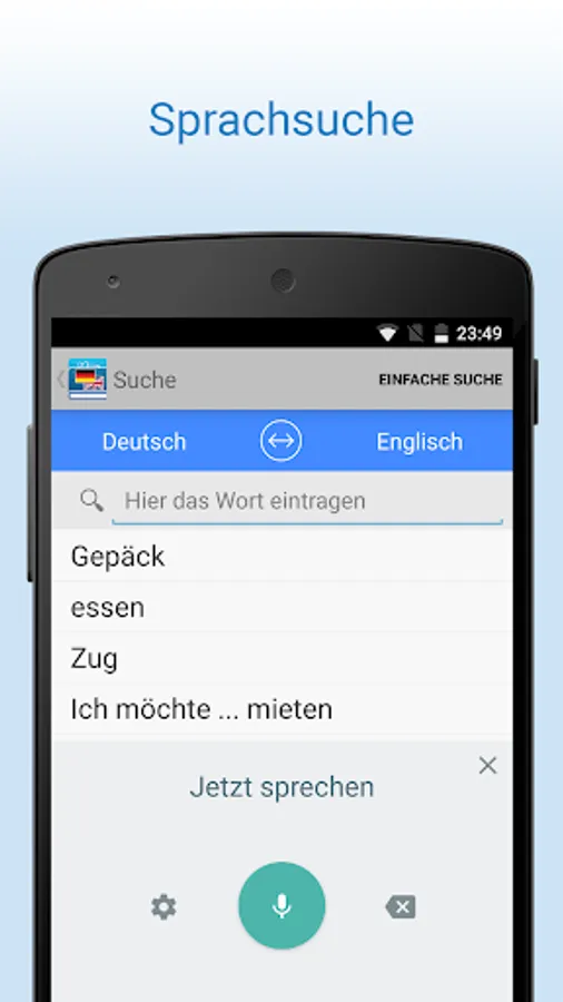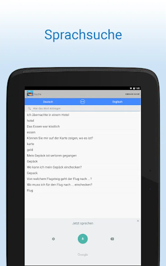 * Tippe den Suchbegriff ein oder nutze die Sprachsuche und diktiere einfach das Wort.