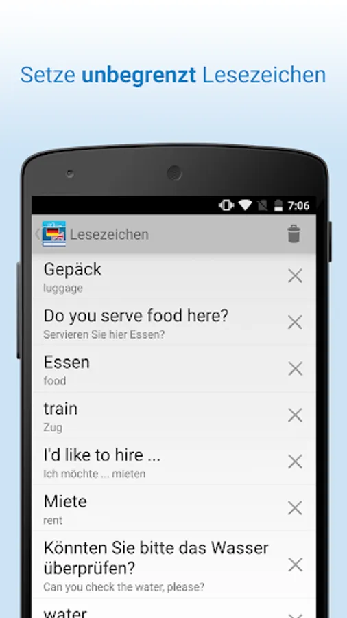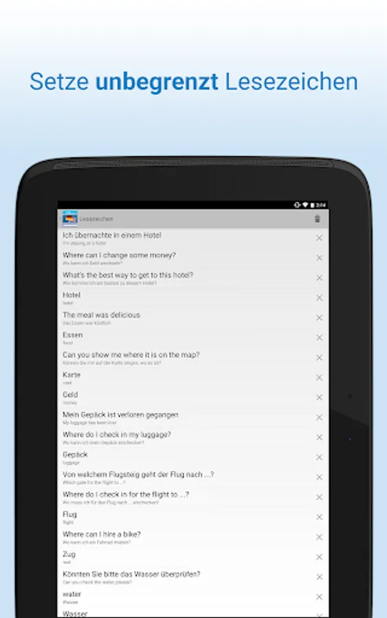 * Setze unbegrenzt Lesezeichen und greife schnell auf alle gespeicherten Wörter zu.