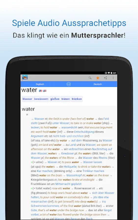 * Spiele Audio Aussprachetipps von Wörtern, gängigen Phrasen und Fragen ab (nur im Online Modus). Das klingt wie ein Muttersprachler!