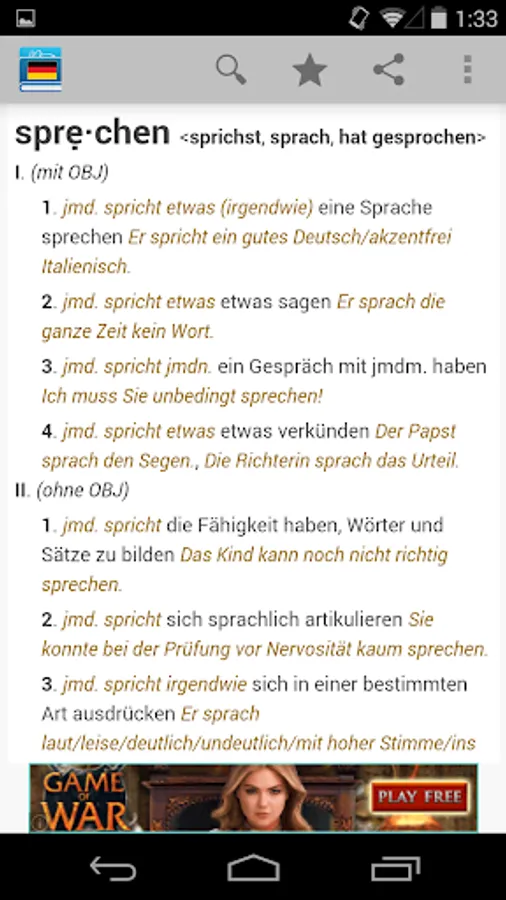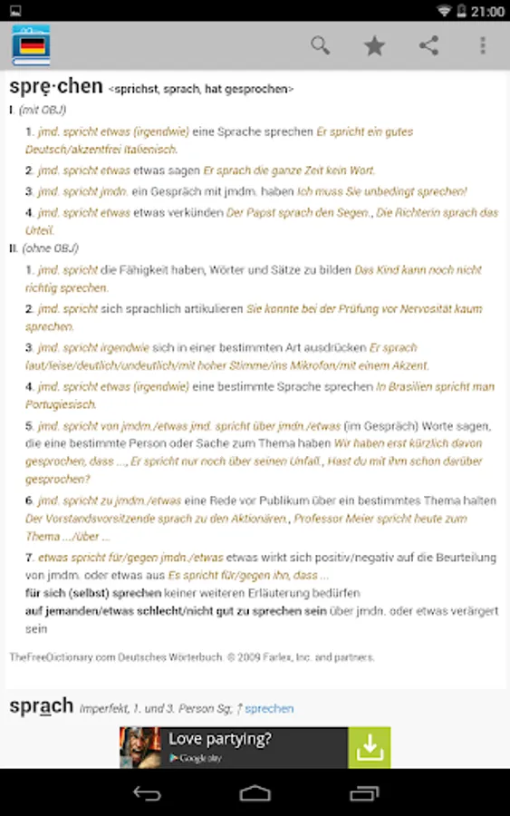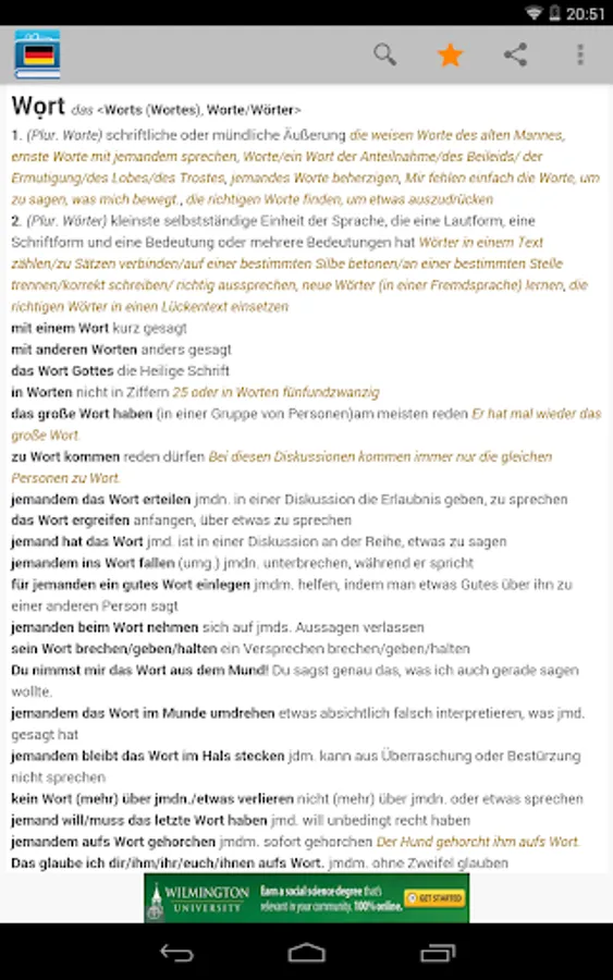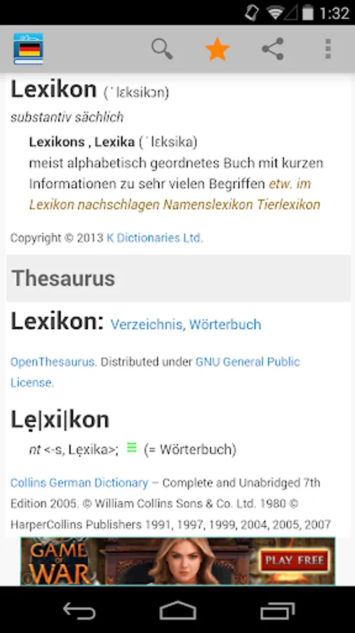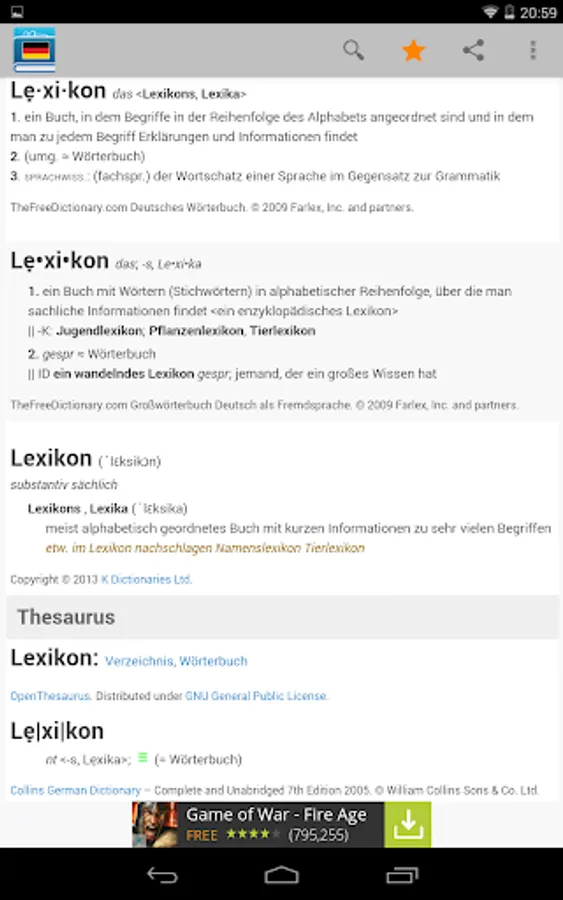 Search multiple German dictionaries and a thesaurus, all from the most reliable sources. In addition, also in offline mode.