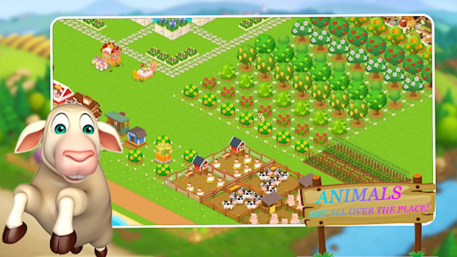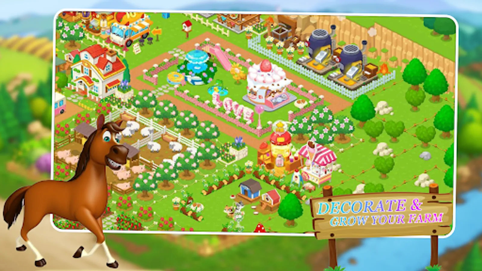 Lead the faming business world near the township in this popular farming game. Happy farming day farmers! Tend to your crops, trade products and sell your produce via a delivery train. Horses, cats, dogs, cow and hens are not easy to manage on a big farm bay. Decorate your farmland in this free offline farm game. Offline farming is going to be epic for your lush green family farm. You have lovely animals to take care of in this farming game that simulates jobs of a farmer who is busy in managing a big farm offline farming games.