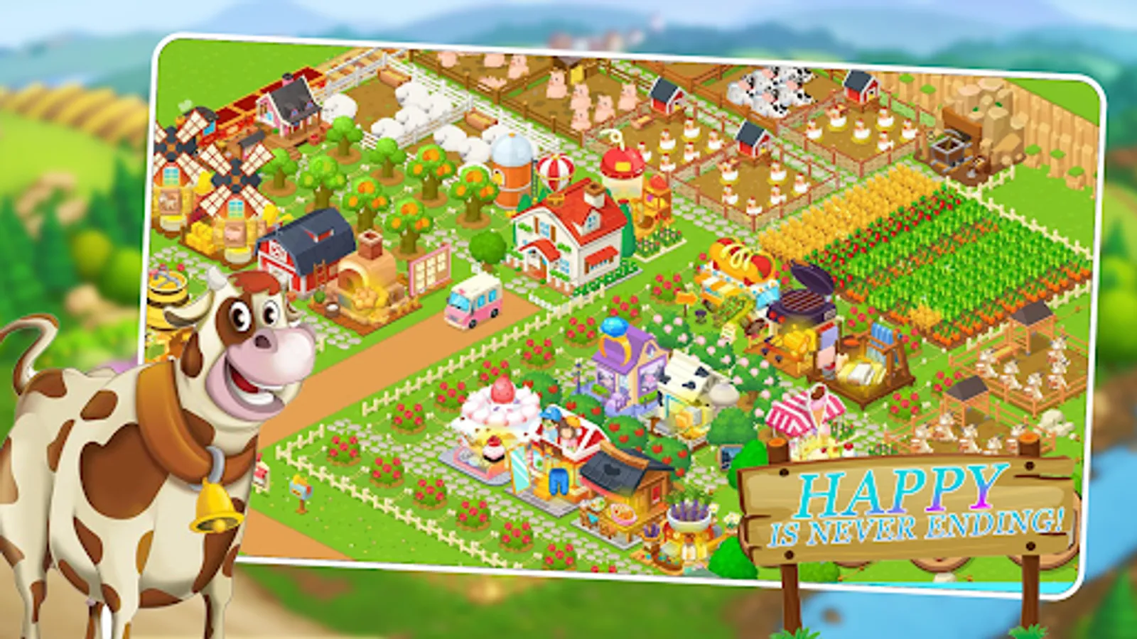 After inheriting a farm from your parents, you must complete farming tasks to restore the legacy to become the most famous farmer in this free farming game. Being social will help you manage your farm and grow it. A fresh new world to care of your lush green farm and animals with farm games. Build your dream farm in this best middle ages offline farming game. Manage your farm, harvest crops, sell goods to build your lands and enjoy the most popular offline farm games. Prepare your farm while you gather resources and cultivate before you harvest the crops like corn, wheat, cotton, canola and hay. This is the variety you will get to grow to become a happy farmer of farm bay.