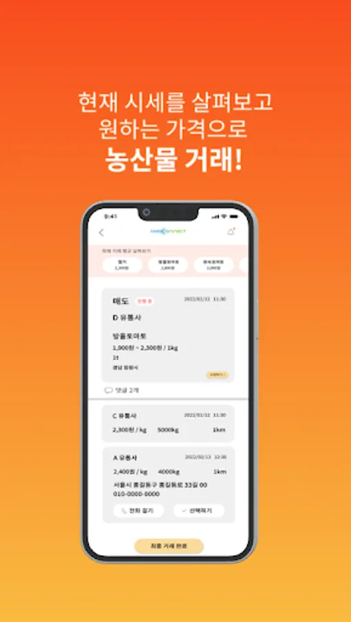 - Farmers who want to directly sell agricultural products, distributors who want to buy agricultural products, etc. can participate in agricultural products trading anywhere in the country.