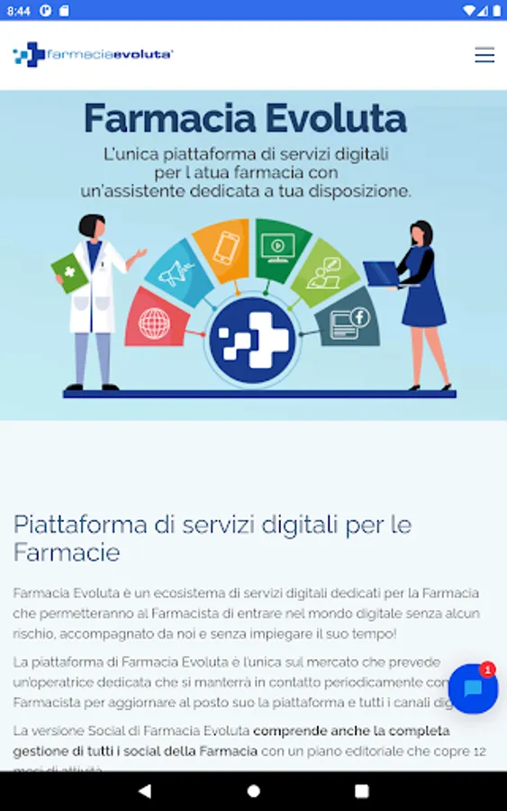Farmacia Evoluta è un’occasione unica per ogni Farmacia italiana che vuole entrare nel mondo digitale e di internet affidandosi a un partner unico, focalizzato solo ed esclusivamente sulle Farmacie, con un’esperienza pluriennale e con più di 1000 Farmacie servite nel corso degli anni.