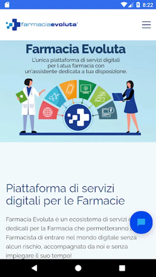 Farmacia Evoluta è un ecosistema di servizi dedicati per la Farmacia che permetteranno al Farmacista di entrare nel mondo digitale senza alcun rischio, accompagnato da noi e senza impiegare il suo tempo.